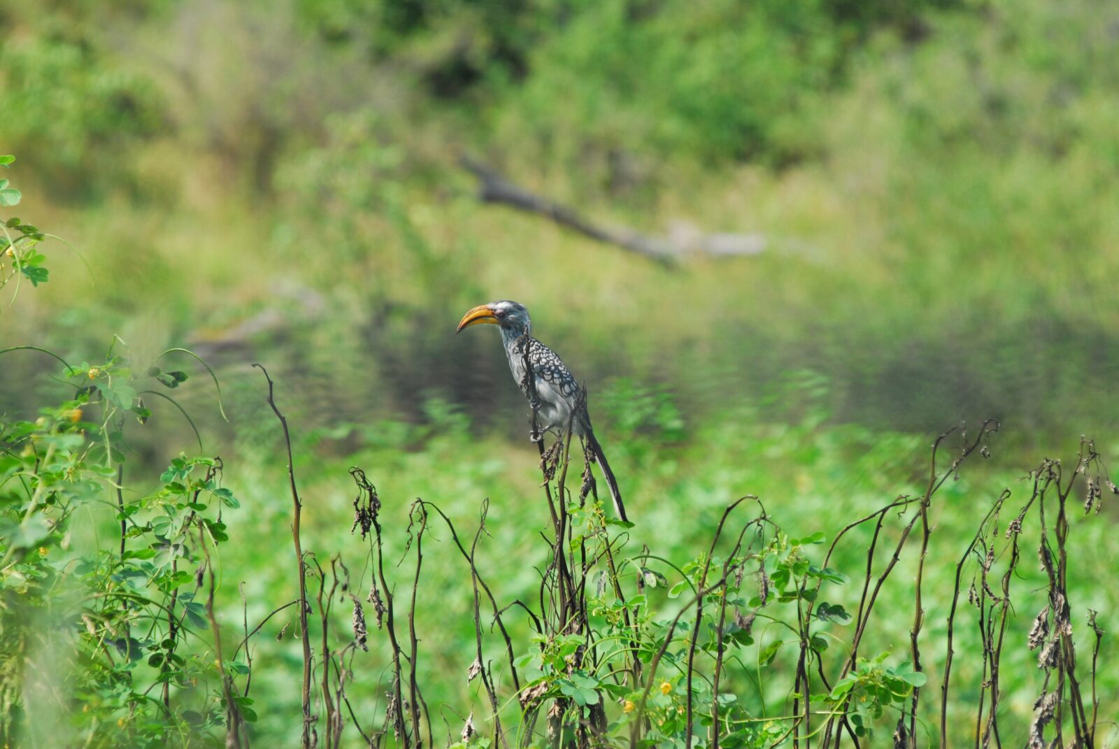 Tijdens mijn bezoek aan het Kruger National Park zag ik een zuidelijke geelsnaveltok. Met zijn felgele, gebogen snavel en zwart-witte verenkleed was hij een opvallende verschijning. Het was geweldig om deze nieuwsgierige vogel in actie te zien, foeragerend op de grond en zittend in de top van een boom. Een onvergetelijk moment!